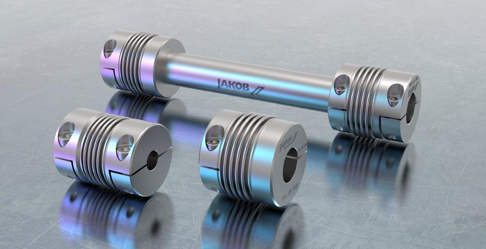 JAKOB Antriebstechnik bietet zwei Edelstahlkupplungen als Standardbaureihen an. Die Metallbalgkupplung KG bzw. KGH-VA sowie die Distanzkupplungsreihe WD-VA, die beide in der äußerst montagefreundlichen Halbschalennabenausführung gefertigt werden. Montage und Demontage der Kupplungen sind so selbst in beengten Einbauverhältnissen keine Schwierigkeit mehr. Die festen Nabenhälften werden auf die Welle aufgelegt und mit den losen Halbschalenstücken verschraubt. Gerade bei feststehenden Wellenzapfen kann der Servicefall bedeuten, dass die Antriebs- und/oder Abtriebseinheit umständlich demontiert werden müssen, was somit entfällt. Durch die rostfreie Edelstahlbauweise sind sie auch für Einsätze im Lebensmittelbereich hervorragend geeignet.