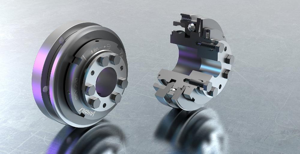 Mit dem Typ SKY bietet JAKOB Antriebstechnik eine Sicherheitskupplung für indirekte Antriebe zur Überlastbegrenzung bzw. zum Kollisionsschutz, die den modernsten Anforderungen gerecht wird. Sie bietet hohe Ausrückmomente bis 9000 Nm bei einer sehr kompakten Bauweise. Durch die Konus-Klemmbuchse ist sie einfach zu montieren. Große Wellen- bzw. Bohrungsdurchmesser, eine hohe mögliche Lagerbelastung und die ausgezeichnete Rundlaufgenauigkeit runden das Konzept ab. Durch die Verwendung von hochfestem Vergütungsstahl mit Randschichthärtung bzw. Plasmabeschichtung der relevanten Funktionsflächen konnten besonders hohe Ausrückmomente realisiert werden.
