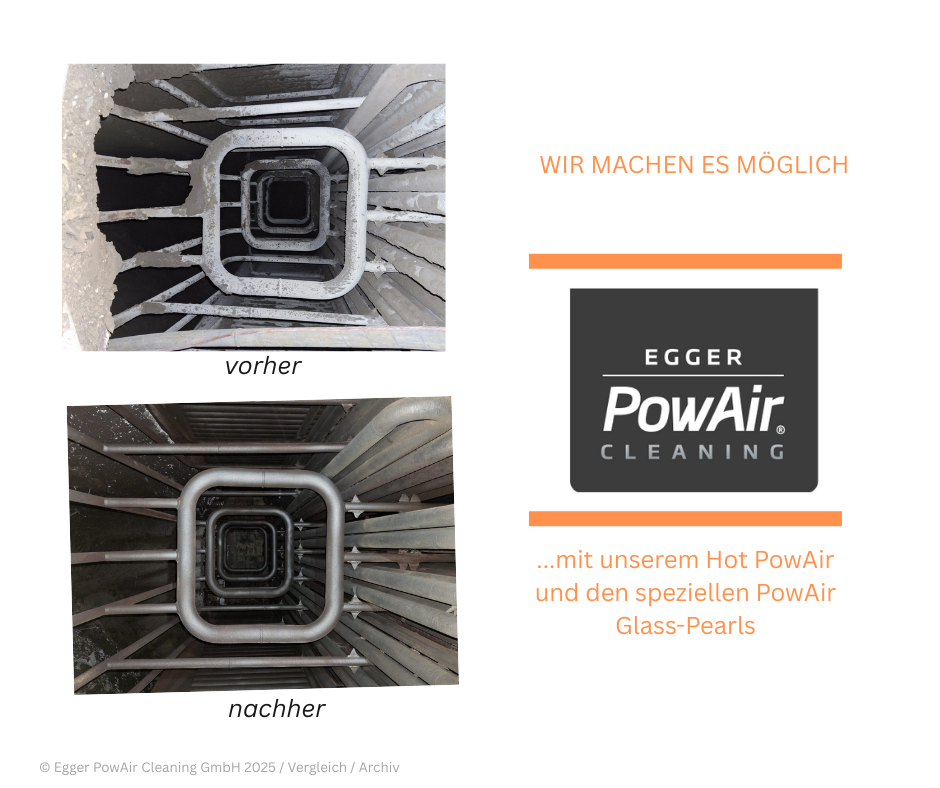 Zunächst galt es, das Innere des 23-Megawatt-Dampfkessels einzurüsten. Mit Hilfe dieses Industriegerüsts war es unseren Cleanern möglich, jeden Winkel von so genannten Anbackungen und Schlacken zu befreien. Zum Einsatz kamen dabei die schon erwähnten PowAir Glasspearls und unsere Hot PowAir-Technologie – in diesem Falle mit einem Druck von bis zu 24 bar. Nach gut einer Tag- und Nachtschicht waren die Revisionsarbeiten beendet und das KEW konnte seinen Biomasse-Dampfkessel wieder hochfahren. Das Heizwerk Hartberg in der Steiermark/Österreich gehört zur KELAG Energie & Wärme GmbH. Mit heimischer Biomasse als Basis versorgt das Werk die Stadt Hartberg mit umweltfreundlicher Fernwärme und Prolactal, den Weltmarktführer im Bereich biologischer Milch- und Molkenpulver für Säuglingsnahrung mit Dampf für die Produktionsprozesse. Die von Egger PowAir gereinigte Kesselanlage war im vergangenen Jahr 2019 rund 8.200 Stunden in Betrieb. Wir bedanken uns recht herzlich beim KEW Hartberg für das Vertrauen und die Zusammenarbeit!