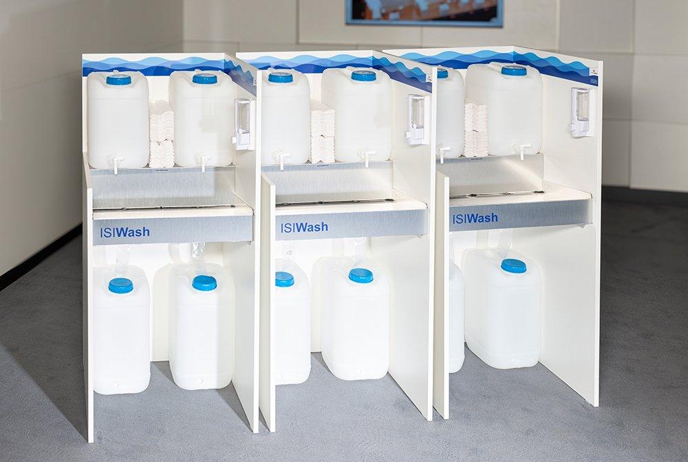 Die Lösung sind mobile Waschbecken ISIWash aus dem Hause ISINGERMERZ. Unsere Waschbecken kommen sonst im Messe- und Eventbau zum Einsatz, können aber für den schulischen Betrieb leicht angepasst werden.