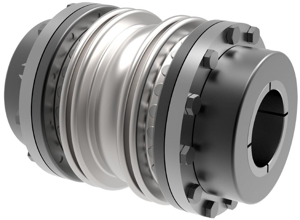 Die Metallbalgkupplungen der Baureihe KXL der JAKOB Antriebstechnik GmbH wurden für mittlere und große Antriebe bis maximal 65.000 Nm konzipiert. Ein besonderes Konstruktionsmerkmal ist die dreiteilige Ausführung mit einem flexiblen Balgpaket als Zwischenstück. Dieses ausbaubare Zwischenstück, bestehend aus einem optimierten, verdrehsteifen Edelstahlbalg mit jeweils 2 Balgwellen pro Seite und einem längenvariablen Zwischenrohr, ist reibschlüssig (Schrauben ISO 4017/10.9) mit den beiden Naben verbunden. Hieraus resultiert eine erhebliche Montageerleichterung, da z.B. im Wartungs- oder Servicefall eine aufwendige Demontage der schweren Antriebs- bzw. Abtriebsaggregate entfallen kann. Dem Konstrukteur stehen für den konkreten Einsatzfall mehrere Nabenvarianten zur Verfügung. Das ausgesprochen günstige Massenträgheitsmoment und der rotationssymetrische Aufbau gewährleisten ein gutes dynamisches Betriebsverhalten. Die KXL-Kupplungen sind vor allem für präzise Antriebe, wie beispielsweise für Druckmaschinen, Querschneider, Haupt­spindelantriebe, Transferachsen oder Getriebeanbindungen geeignet. Ein Medientransport oder ein Parallelantriebsstrang durch den Kupplungsinnenraum ist grundsätzlich möglich. Die Anbindung an die Wellen kann wahlweise als Konusspannringnabe oder als Flanschnabe erfolgen.