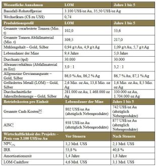 Bestimmte hierin gemachte Aussagen und enthaltene Informationen können "zukunftsgerichtete Informationen" und "zukunftsgerichtete Aussagen" im Sinne der anwendbaren kanadischen und US-amerikanischen Wertpapiergesetze darstellen. Diese Aussagen und Informationen basieren auf Fakten, die dem Unternehmen derzeit zur Verfügung stehen, und es gibt keine Gewähr, dass die tatsächlichen Ergebnisse den Erwartungen des Managements entsprechen werden. Zukunftsgerichtete Aussagen und Informationen können durch Begriffe wie "antizipiert", "glaubt", "Ziele", "schätzt", "plant", "erwartet", "kann", "wird", "könnte" oder "würde" gekennzeichnet sein. Vorausblickende Aussagen und Informationen, die hierin enthalten sind, basieren auf bestimmten Faktoren und Annahmen, die sich unter anderem auf die Schätzung von Mineralressourcen und -reserven, die Durchführung von Ressourcen- und Reservenschätzungen, Metallpreise, Besteuerung, die Schätzung, den Zeitplan und die Höhe zukünftiger Exploration und Erschließung, Kapital- und Betriebskosten, die Verfügbarkeit von Finanzierungen, den Erhalt behördlicher Genehmigungen, Umweltrisiken, Rechtsstreitigkeiten und andere Angelegenheiten beziehen. Obwohl das Unternehmen seine Annahmen zum Zeitpunkt dieses Dokuments als vernünftig erachtet, sind vorausblickende Aussagen und Informationen keine Garantie für zukünftige Leistungen und die Leser sollten solchen Aussagen keine unangemessene Bedeutung beimessen, da sich die tatsächlichen Ereignisse und Ergebnisse erheblich von den hier beschriebenen unterscheiden können. Das Unternehmen verpflichtet sich nicht, vorausblickende Aussagen oder Informationen zu aktualisieren, es sei denn, dies wird von den geltenden Wertpapiergesetzen verlangt.