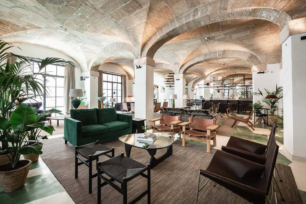 Das schwedische Studio Wingårdhs renovierte gemeinsam mit den spanischen Firmen Jordi Herrero Arquitectos und Eduardo Garcia Acuna Arquitecto das Gebäude aus dem 16. Jahrhundert und gaben ihm eine neue Designsprache mit Akzenten aus Messing und Holz. Dieser moderne Ansatz wird durch zeitlose Möbel, Leuchten und Armaturen von international renommierten Marken aus Europa perfektioniert. Neben Sesseln von Carl Hansen und Leuchten von Örsjö sind Stücke von Artek, HAY und B&B Italia im Haus zu finden, die neben den sorgfältig restaurierten Bögen, Säulen und Gewölben des alten Bauwerks auf außergewöhnliche Weise zur Geltung kommen. Dieses harmonische Wechselspiel aus Altem und Neuem wird durch handgefertigte Fliesen unterstrichen, die als Unikate aus der Zusammenarbeit mit der lokalen Keramikmarke Huguet hervorgingen. Von der mallorquinischen Landschaft inspiriert, haben die Einrichtungsexperten von Wingårdhs exklusiv für das Hotel eine Fliese im Stil grüner und weißer Aquarelle entworfen, die im Foyer, den Zimmern und den Bädern zu bewundern ist. Jedes Stück wird von Huguets erfahrenen Handwerkern in einer Manufaktur östlich von Palma in Handarbeit gefertigt.