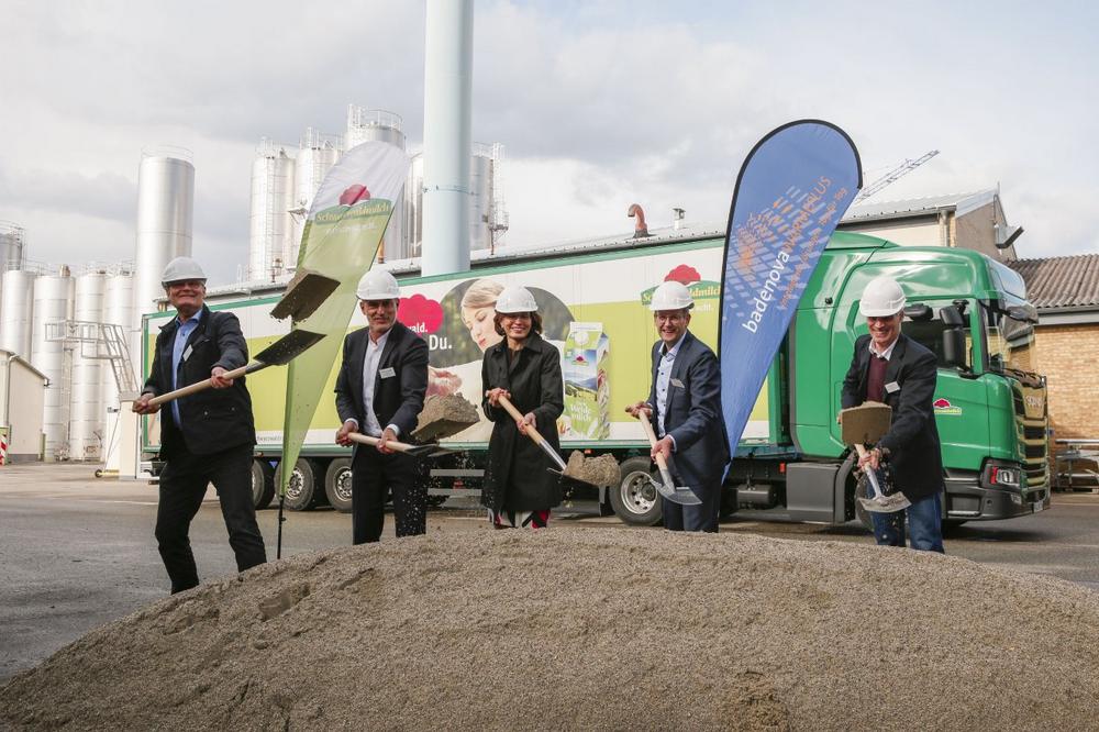 Mit dem ersten Spatenstich für eine neue Heizzentrale am Firmensitz der Schwarzwaldmilch in Freiburg Haslach haben badenova und die Schwarzwaldmilch jetzt den Startschuss für Freiburgs Wärmeversorgung der Zukunft gegeben. Nach Fertigstellung der Heizzentrale wird industrielle Abwärme aus der Produktion der Schwarzwaldmilch die Freiburger Stadtteile Haslach und Vauban versorgen – über den WÄRMEverbund Freiburg-Süd, den die badenova Tochter badenovaWÄRMEPLUS mit einem Investitionsaufwand von 36 Millionen Euro in den nächsten vier Jahren errichten will. Davon umfasst die Investition in die Heizzentrale der Schwarzwaldmilch Heizzentrale 12,6 Mio. Euro.
