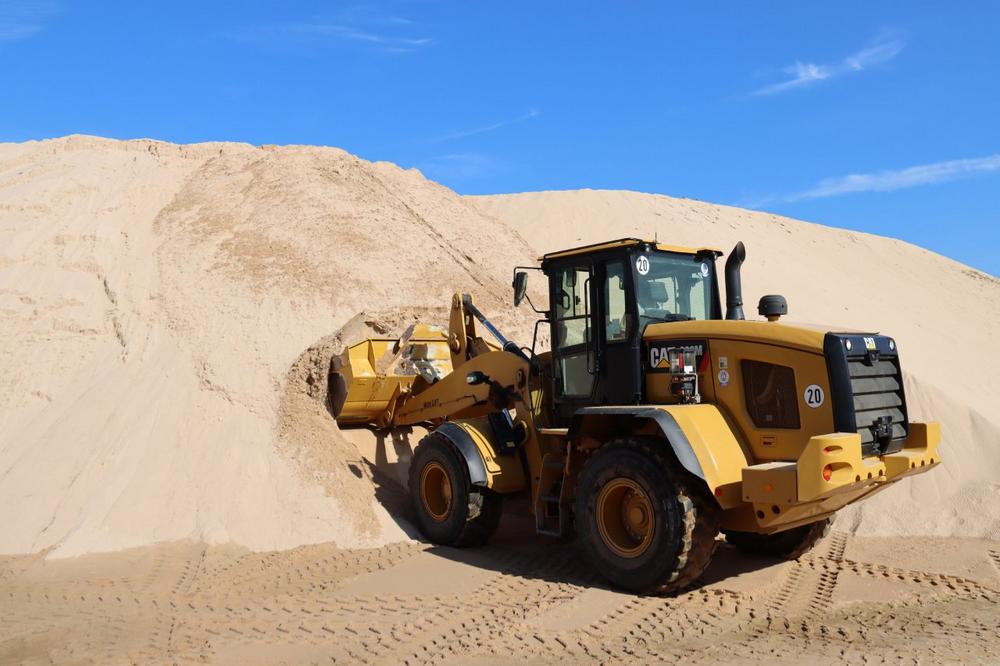 Während Sand im Abbaugebiet von Georgensgmünd im Trockenabbau gewonnen wird, setzt das Unternehmen in Pyras bei Hilpoltstein auf den kombinierten Trocken- und Nassabbau, den dort ein Saugbagger übernimmt. Im Rohstoffabbau, in der Aufbereitung sowie in der Beschickung der Produktionsanlagen, in der Rückverladung und in der Wiederauffüllung sowie Rekultivierung sind weitere Baumaschinen gefordert, wie ein Cat Kettenbagger 336 GC, ein Cat Kettendozer D4, die Cat Radlader 938M und 938K, 950M sowie 907H und eine Cat Stampffußwalze CP56B.