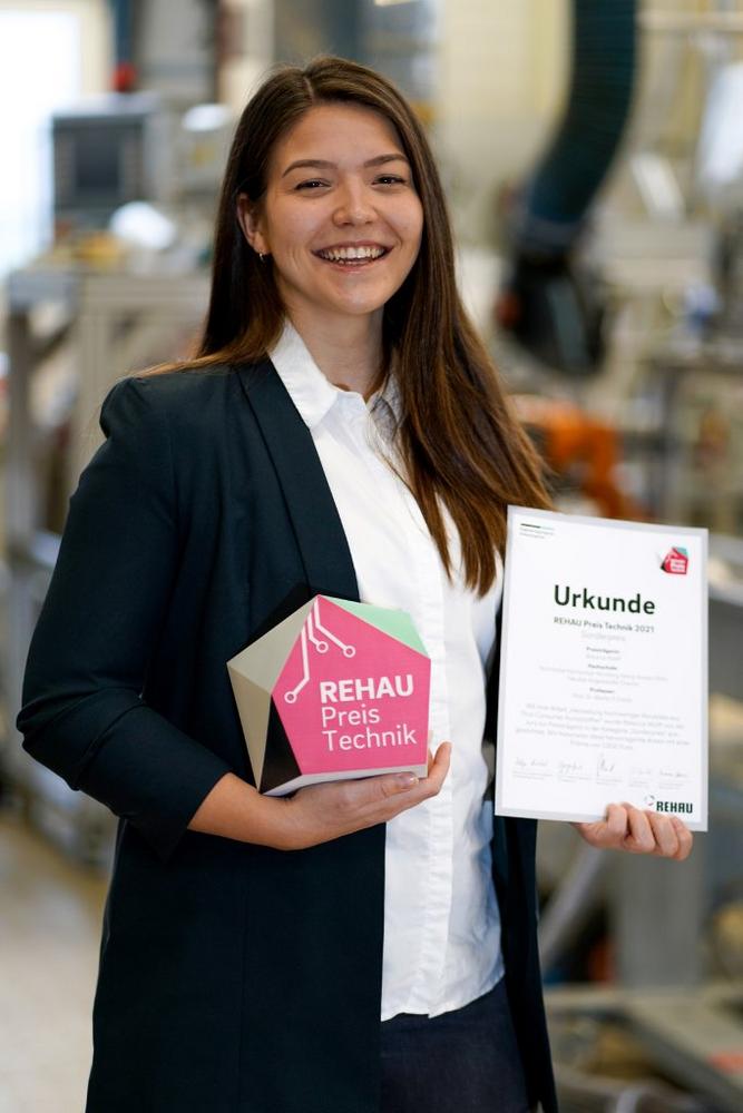 Linda Phetsananh (26) gewinnt den „REHAU Preis Technik 2021“ in der Kategorie Bachelorarbeit für ihre Arbeit: „Methodenentwicklung zur beschleunigten Ermittlung von Spannungsrelaxation bei Thermoplasten unter statischer Langzeitbelastung“.