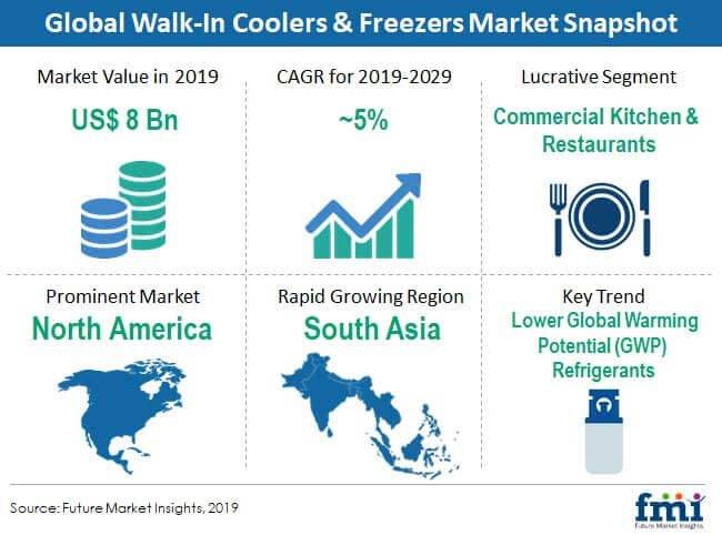 - The global walk-in Coolers and Freezers market was valued at ~US$ 8 Bn in 2019.