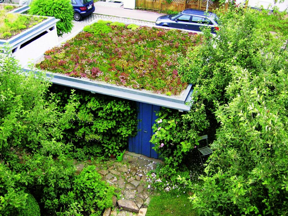 Für die Umwelt lohnt sich jeder Quadratmeter noch viel mehr, da der Natur wertvoller Lebensraum zurückgegeben wird. Um Arterhalt und Artenreichtum gezielt zu fördern, hat ZinCo die Pflanzengemeinschaft „Bienenweide“ im Garagenpaket. Sie beinhaltet mehr als 35 verschiedene, nektar- und pollenreiche Pflanzenarten mit Blühkraft vom zeitigen Frühjahr bis in den späten Herbst. Wer zusätzlich Nistkästen und Totholz aufbringt oder sogar Anhügelungen schafft und ergänzende Stauden pflanzt, der steigert die Biodiversität weiter. So entsteht eine pflegearme Begrünung, die ihrerseits einen wertvollen Beitrag für das Kleinklima schafft (durch die Verdunstung) sowie Staub und Schadstoffe bindet. Außerdem bietet die Begrünung Schallschutz und Wärmedämmung.