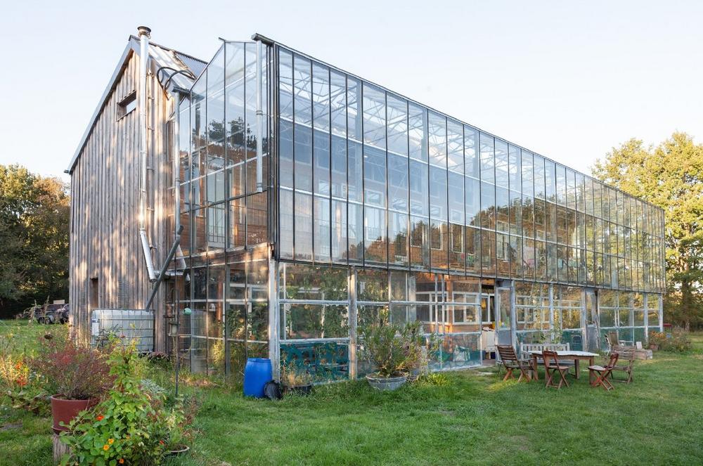 Errichtet wurde das Haus in Eigenleistungen mit Hilfe von Freunden und Freiwilligen. Entstanden ist ein Gebäude mit einem geringen ökologischen Fußabdruck. Das wiederverwendete, feuerverzinkte Gewächshaus hat dazu beigetragen.