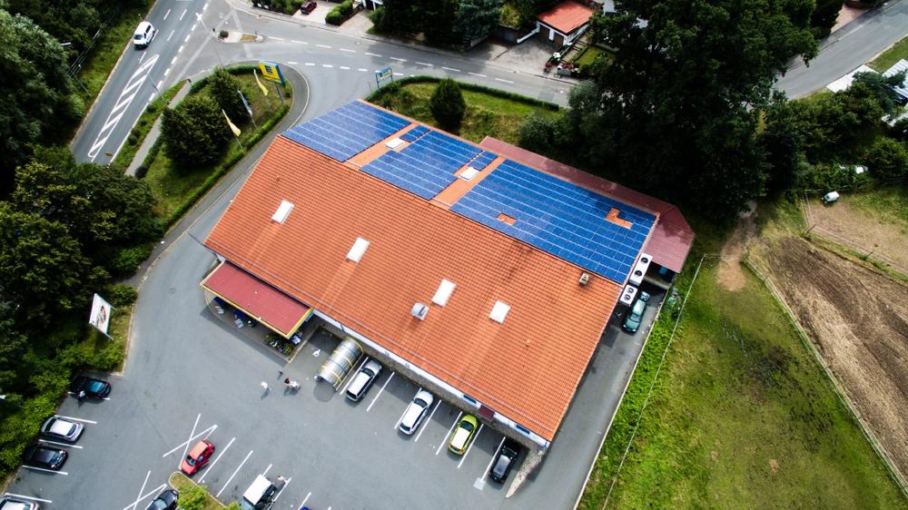 Die Anlage besteht aus 357 polykristallinen Modulen und einem SMA-Wechselrichter, der die Sonnenenergie in gebrauchsfertigen Strom umwandelt. Insgesamt kommt die Photovoltaikanlage auf eine Höchstleistung von 91,035 kWp. Auf modernen Einkaufsmärkten werden in der Regel Flachdachsysteme mit Photovoltaik aufgebaut. So auch bei dem Edeka Louzil in Lauf a. d. Pegnitz, um den Ertrag der Anlage zu maximieren.