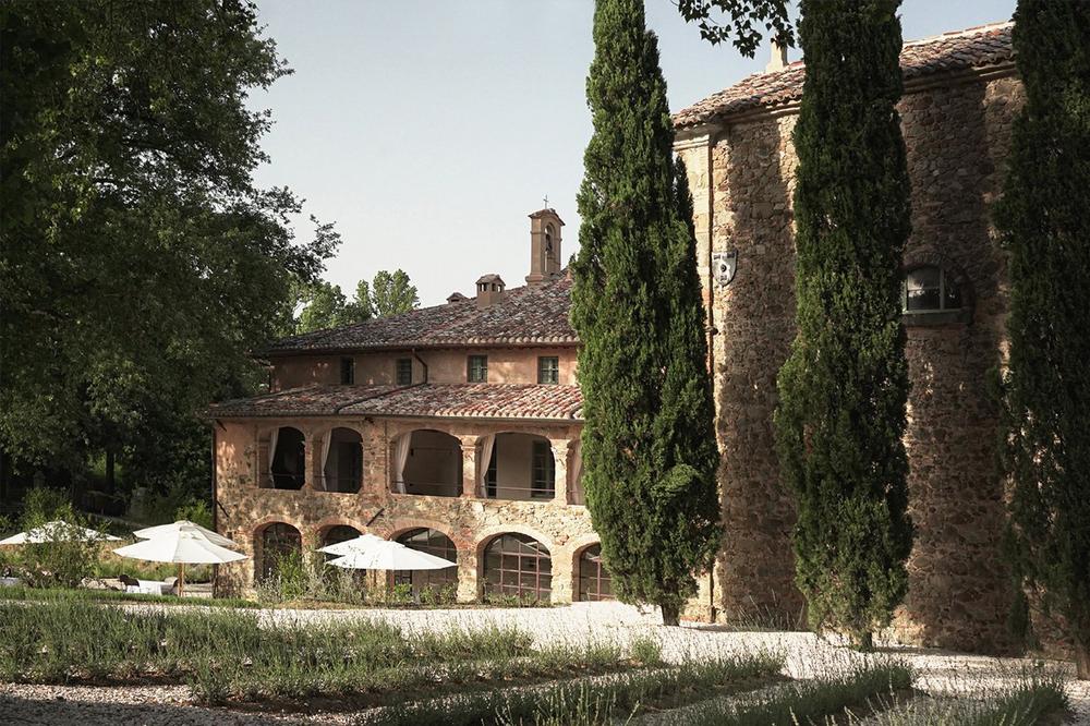 Um die drei Klostergebäude originalgetreu zu restaurieren, beauftragten Kubierschky und Lütjens Jacopo Venerosi Pesciolini und sein Team von Studio Archiloop, die auch für das Interior Design zuständig waren. Pesciolini schuf für jeden Raum – vom hoteleigenen Restaurant und der Bar über den Pool bis hin zu den Gästezimmern – ein vollkommen individuelles Design. Somit hat jeder Bereich eine eigene Identität, die durch verschiedene Farbpaletten, Materialien und Möbel ausgedrückt wird. Elemente wie Holzböden, offengelegte Terracotta-Ziegeln, natürliche Steinwände und Details aus Eisen und Messing ziehen sich wie ein roter Faden durch das ganze Anwesen. Die Kunstwerke, die die Wände schmücken, wurden von Matteo Pacini kuratiert und von über 10 Künstlern, davon einige aus der Region, gefertigt – darunter Louis Boujac, Domenica Regazzoni und Massimiliano Poggioni. Zusätzliche Deko-Elemente wurden von der umbrischen Marke Endiadi Ceramics angefertigt.