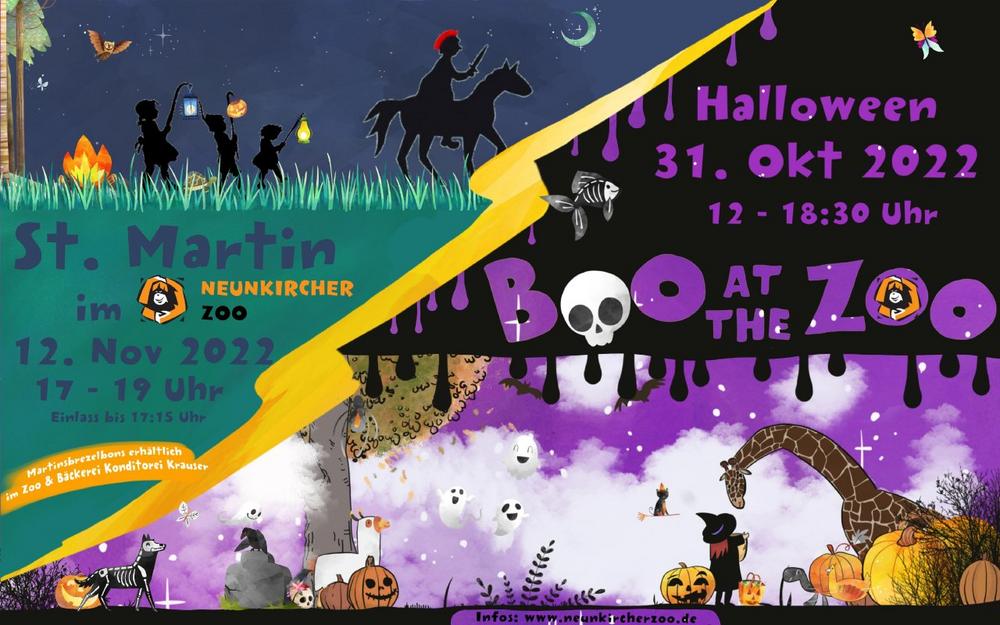 Mit „Boo at the Zoo“ wird es an Halloween schaurig schön. Der Neunkircher Zoo präsentiert sich in gruseligem Gewand. An der Zooschule wird es passende Snacks und Getränke geben, zudem können die Gäste ihren eigenen Kürbis erwerben und beim Kürbisschnitzen richtig kreativ werden. Die Kürbisse für das Schnitzen sowie die Dekoration im gesamten Zoo stammen von dem regionalen Bauernhof Guhl. Kunterbunt geht es dank der Drogeriemarktkette DM beim Kinderschminken zu. Zum Abschluss des Tages wird es eine kleine Wanderung nach Sonnenuntergang durch den düsteren Zoo geben.
