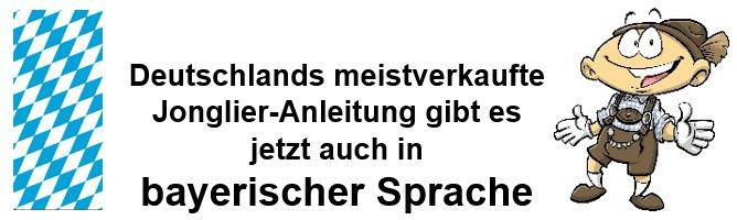 Bayerisch gesagt: "Griabig, grachad, andaschd ois olle andaan" bekommt man für 4,90 € viel Spaß mit der bayerischen Sprache und dem "Schongliern lerna".  Für weitere 27,50 € bekommt man zur bayerischen Jonglier-Anleitung entweder bayerische Bälle in weiß-blau dazu oder die Franken-Version in weiß-rot.
