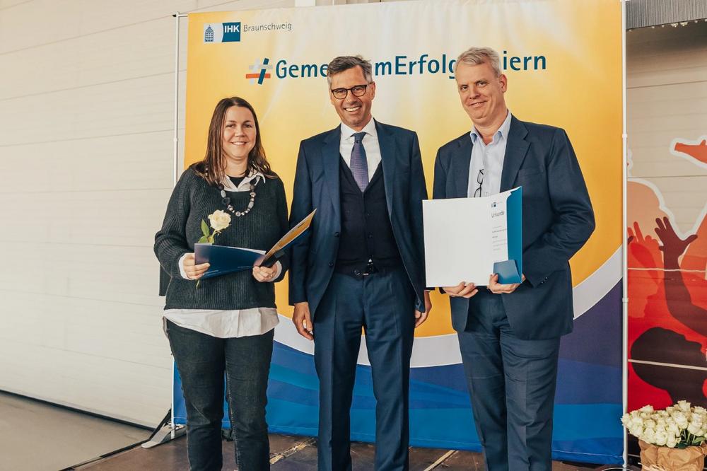 Für eine feierliche Urkundenübergabe durch den Präsidenten der IHK Braunschweig, Tobias Hoffmann, wurde Frau Sattler am 07.10.2022 nach Braunschweig eingeladen. Dort wurden neben den 132 ehemaligen Auszubildenden auch ihre Ausbildungsbetriebe und Berufsbildenden Schulen für die Ausbildung geehrt. So konnte Michael Naber als Direktor für das AHORN Harz Hotel Braunlage die Urkunde mit der Ehrung für die „besonderen Verdienste für die Berufsausbildung in der Abschlussprüfung Winter 2021/2022“ entgegennehmen.