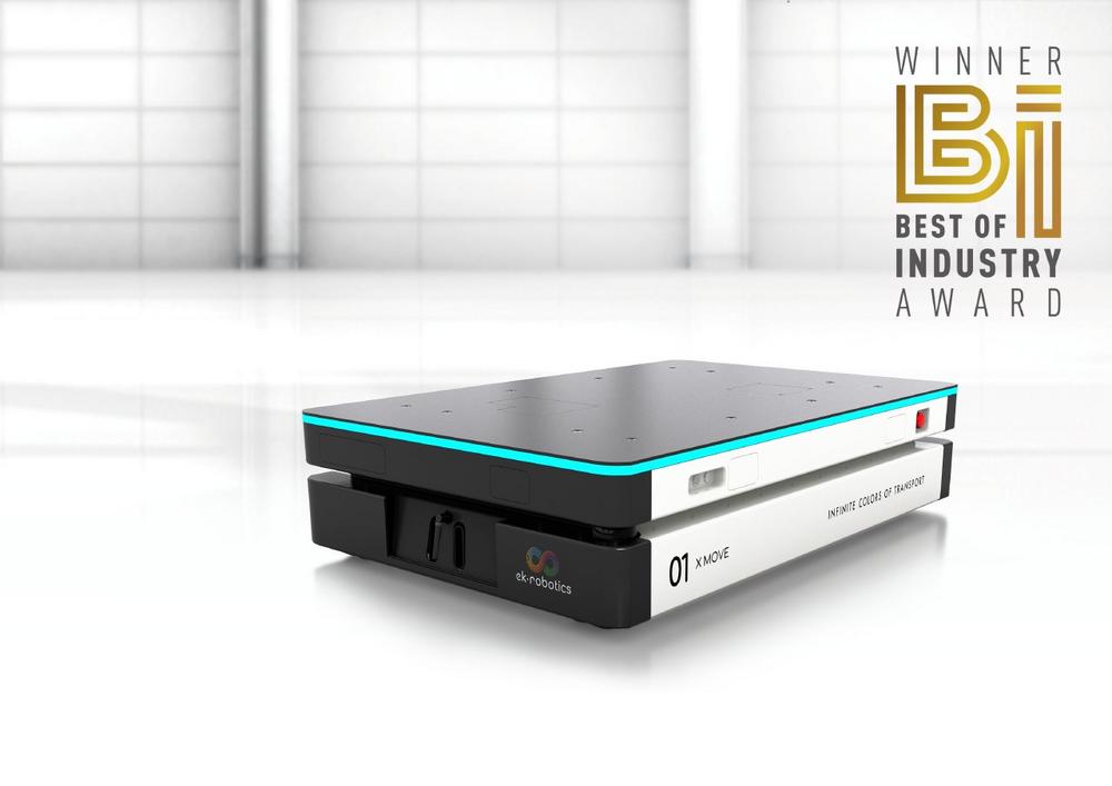 Im Finale des Best of Industry Awards wurde es spannend: Nach der sechsmonatigen Voting-Phase haben die Leser der Fachmedien der Vogel Communications Group für ihren Favoriten abgestimmt und entschieden, welche Innovationen dieses Jahr den begehrten Industriepreis erhalten. Insgesamt haben sich 190 Teilnehmer in 24 Kategorien beworben, knapp 20.000 Leserstimmen wurden abgegeben. Jetzt ist der X MOVE mit dem Best of Industry Award in der Kategorie Fördertechnik ausgezeichnet worden. „Wir freuen uns sehr über die Auszeichnung unserer 2-in1-Transportplattform. Der Best of Industry Award würdigt die Arbeit unserer Kolleginnen und Kollegen, die an dem X MOVE gearbeitet und als neue Transportlösung marktreif gemacht haben“, sagt Ronald Kretschmer, Chief Sales Officer bei ek robotics. „Mit dem X MOVE haben wir ein Fahrerloses Transportfahrzeug (FTF) gelauncht, dass in beiden Welten der automatisierten Transportsysteme zuhause ist. Als autonome mobile Plattform gelingt mit dem X MOVE der schnelle Einstieg in die Transportrobotik, als virtuell geführtes Fahrzeug wird der X MOVE Teil eines komplexeren Systems. Eine Fähigkeit, die es bisher noch nie gegeben hat, aber schon jetzt überzeugt“.