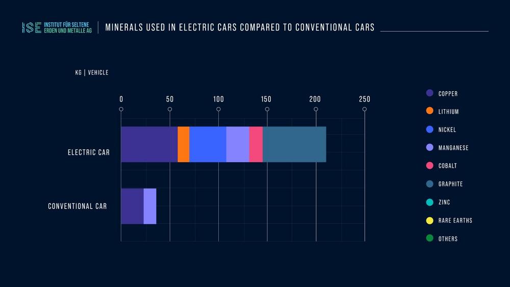Bis vor Kurzem dominierte die Elektronikindustrie die Nachfrage nach Kobalt. 2021 avancierte die Automobilbranche jedoch erstmals mit einem Anteil von 34 Prozent zum wichtigsten Sektor für das seltene Metall – dies geht mit der Verdopplung von E-Auto-Verkäufen gegenüber dem Vorjahr einher. Tendenz weiter steigend, denn der Elektroautomarkt hat auch das größte Wachstumspotenzial. In einem vollelektrischen Fahrzeug sind 4,5 bis 15 Kilogramm Kobalt verbaut. Ein Bruchteil dieser Menge wird in Smartphones verwendet, die je nach Modell auf fünf bis 20 Gramm kommen.