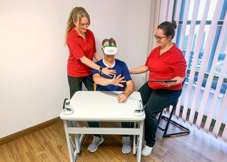 „Um die Behandlungsqualität auf hohem Niveau zu sichern, beteiligen wir uns mit dem Zentrum für Orthopädie, Endoprothetik und Sportmedizin an mehreren Studien“, erklärt Zentrumsleiter Professor Saxler, der mit Oberärztin Dr. Ivonne Kammler eine ausgewiesene Schulter-Spezialistin in seiner Klinik hat. Um die Datenlage vor allem bei Schulter-Endoprothesen zu verbessern, werden in vereinheitlichten Fragebögen die Ergebnisse eines Schulterfunktionstests festgehalten: neben Bewegungsumfang und Schmerzindex auch die Kraft. Das Myometer, so der Fachausdruck, misst die Kraftaufwendung bei Außen- und Innendrehung der Schulter beziehungsweise beim Abspreizen des Arms. Vor der Operation und nochmal im Anschluss, so dass ein direkter Vergleich möglich ist.