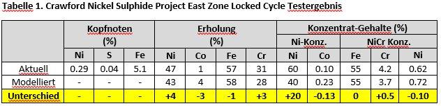 – Der Locked-Cycle-Test lieferte ein 60%iges Nickelsulfidkonzentrat – vermutlich das weltweit hochwertigste produzierte Nickelsulfidkonzentrat – und eine Gesamtnickelgewinnung von 47%, die das Modell der Machbarkeitsstudie um 9% übertraf