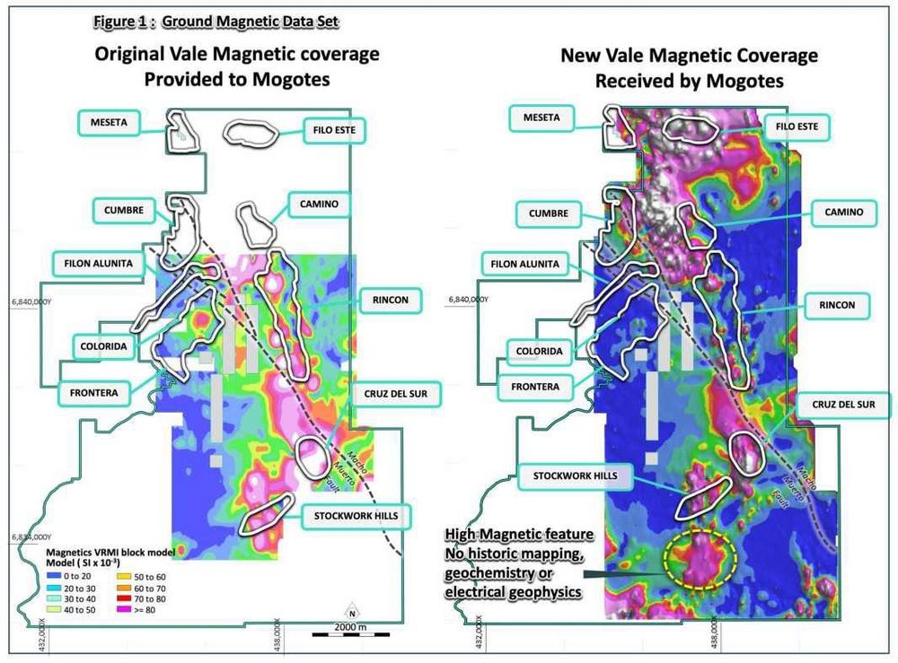 Mogotes gibt bekannt, dass es durch die Zusammenarbeit mit dem brasilianischen Bergbauunternehmen Vale S.A., das zuletzt 2012 auf dem Projekt Filo Sur explorierte, einen bedeutenden Bestand an geophysikalischen Daten für das Projekt Filo Sur erhalten hat. Diese Daten gingen im letzten Jahrzehnt verloren und wurden von nachfolgenden Explorationsunternehmen, die das Projekt evaluierten, nicht mehr eingesehen.
