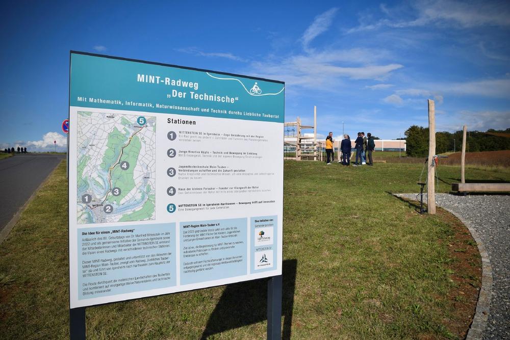 Der MINT-Radweg, der anlässlich des 80. Geburtstags von Dr. Manfred Wittenstein im Jahr 2022 konzipiert wurde, verbindet auf unterhaltsame und ansprechende Weise Mathematik, Informatik, Naturwissenschaften und Technik (MINT) mit dem Sport- und Naturerlebnis im lieblichen Taubertal. Die rund 6,5 Kilometer lange Route führt durch die idyllische Landschaft und lädt an fünf interaktiven Stationen dazu ein, spannende Einblicke in Technik und Naturwissenschaften zu gewinnen. Dabei wird jede Station von einem regionalen Partner unterstützt, darunter die Stiftung Kinder forschen, die Jugendtechnikschule Main-Tauber sowie die Stiftung Junge Kreative Köpfe.