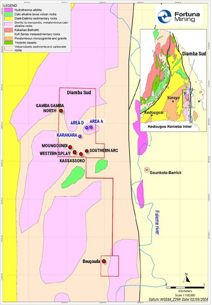 Paul Weedon, Senior Vice President of Exploration bei Fortuna, sagte: "Der Explorationsschwerpunkt bei Diamba Sud hat sich auf die Erprobung und Erweiterung einiger der zuvor nur wenig erbohrten Anomalien verlagert, wobei sich Western Splay rasch als nächster potenzieller Schürfplatz herauskristallisiert. Ermutigende Ergebnisse wie 6,9 g/t Au über eine geschätzte tatsächliche Breite von 33,3 Metern aus 115,4 Metern in Bohrloch DSDD293 und 8,9 g/t Au über eine geschätzte tatsächliche Breite von 27,7 Metern aus 104 Metern in Bohrloch DSR680 unterstreichen das Potenzial."