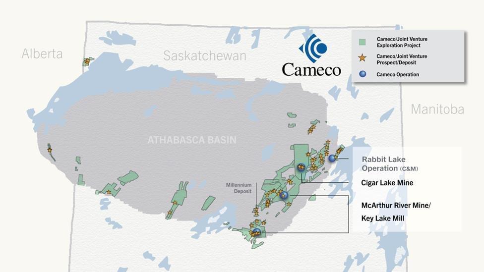 - Durch den Erwerb der Royalty auf diesen beiden Projekten erhält URC Zugang zu etwa 12.800 Hektar Land im äußerst viel versprechenden Athabasca-Becken, mit angesehenen Betreibern und in einem der besten Bergbaurechtsgebiete der Welt.