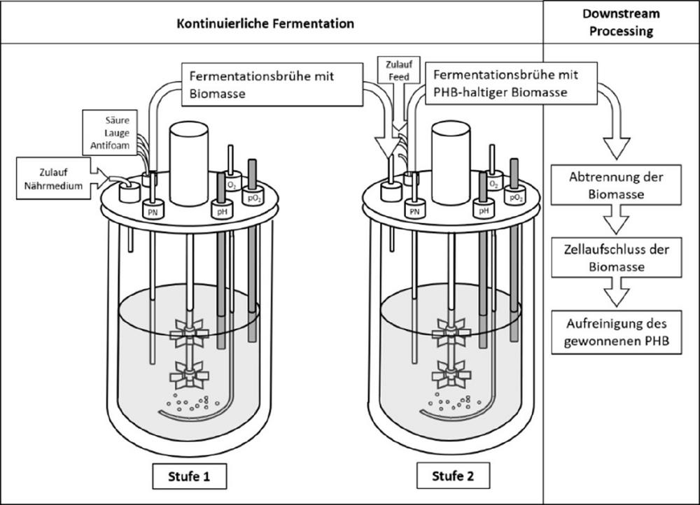 The biopolymer polyhydroxybutyrate (PHB) is currently produced using the so-called fed-batch process, which is a discontinuous process. The challenge for the scientists at the two institutes was to make this process possible in a continuous process and at the same time achieve a uniform chain length of the polymers.