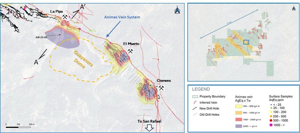 AgEq enthält. Die Ergebnisse dieses Bohrlochs bestätigten, dass entlang des Adersystems Animas unterhalb der historischen Minen und unterhalb des aktuellen Grundwasserspiegels, der die historischen Bergleute stets daran hinderte, tiefer vorzudringen, noch immer großes Potenzial besteht. Das Unternehmen plant, die Entdeckung La Pipa mit weiteren Bohrungen in der Explorations- und Abgrenzungsphase weiterzuverfolgen, sofern die Exploration erfolgreich verläuft.