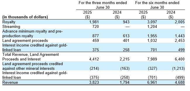 Gold Royalty Reports Record Revenue in the Second Quarter 2025