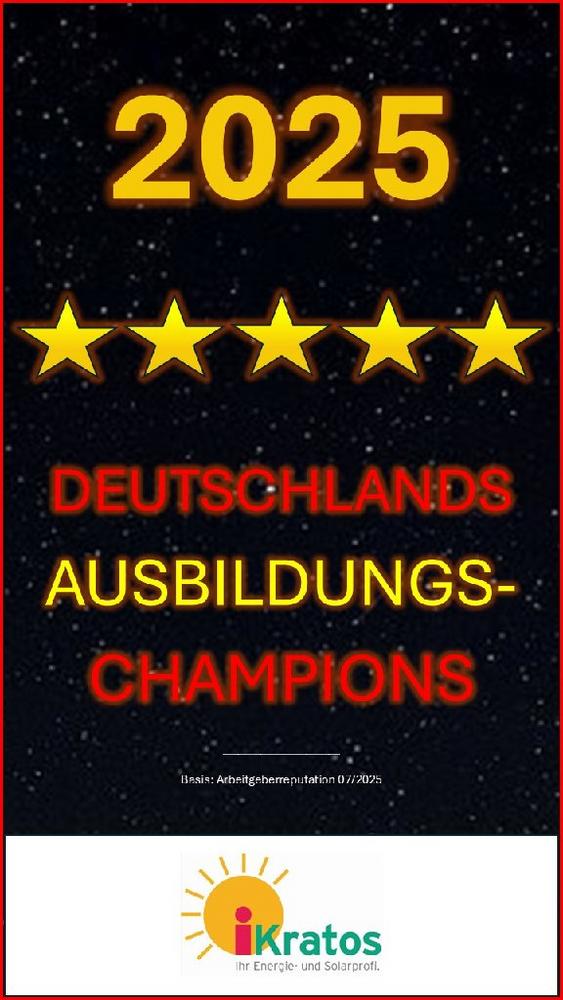 Die Studie "Ausbildungs Champions 2025" des F.A.Z. Instituts und Servicevalue analysiert die Qualität der Ausbildung in zahlreichen deutschen Unternehmen quer durch verschiedene Branchen. Im Fokus stehen dabei Kriterien wie die Zufriedenheit der Auszubildenden, die Qualität der Ausbildungsinhalte, die Betreuung durch Ausbilder und die Karrieremöglichkeiten nach der Ausbildung. Die Auszeichnung von iKratos in der Kategorie Solartechnikanbieter ist ein klares Zeichen für das vorbildliche Engagement des Unternehmens im Bereich der Nachwuchsförderung.