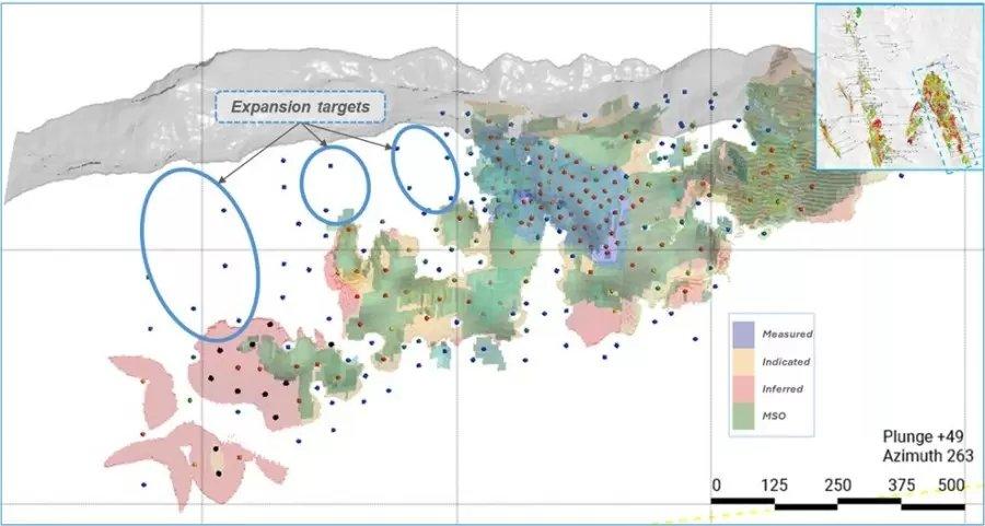 Die Explorationsansätze und -programme von Vizsla Silver, die bis heute abgeschlossen wurden, haben zu einem deutlich verbesserten geologischen Verständnis des Bezirks geführt und mehrere Explorationsschichten mit Aufwärtspotenzial definiert, die sich vom aktuellen Schwerpunkt im Westen aus erstrecken. Dieses Zentrum, das als Projekt 1 bezeichnet wird, beherbergt ~98 % der aktuellen Mineralressourcen im Bezirk und steht im Mittelpunkt der ausstehenden Machbarkeitsstudie (siehe Pressemitteilung zur Aktualisierung der Mineralressourcen vom 6. Januar 2025 und PEA vom 24. Juli 2024).