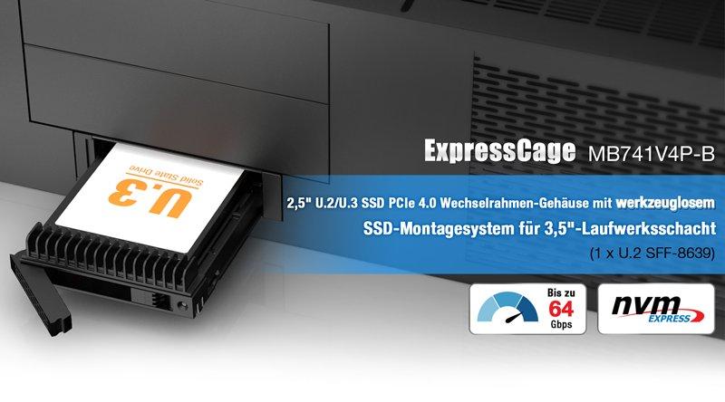 Tool-less Yet Secure U.2/U.3 NVMe SSD Enclosure for 3.5″ Bays