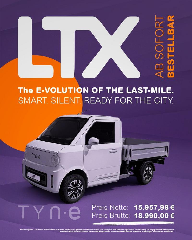 Der TYN-e LTX wurde mit dem Anspruch entwickelt, die Stärken eines vollwertigen Fahrzeugs der N1-Klasse in ein kompakteres Format zu übertragen, ohne dabei auf Komfort, Zuladung, Qualität oder Sicherheit zu verzichten. TYN-e CEO Markus Graf betont: „Mit dem LTX setzen wir neue Maßstäbe für urbane Mobilität: kompakt, effizient und wirtschaftlich – genau das, was unsere Kunden heute brauchen. Nachhaltigkeit darf dabei nicht auf Kosten von Komfort oder Leistung gehen, und genau diese Balance haben wir erreicht.“