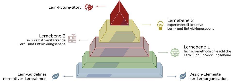 Lern-Prozesse und Lern-Organisation: Hier geht es um die prinzipielle Strukturierung von Lernprozessen. Wie wird das Lernen der drei Kategorien konkret über Lernprozesse und die Lern-Organisation gestaltet und unterstützt.