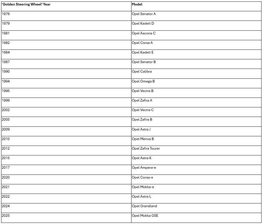 Opel and the ‘Golden Steering Wheel’: All 22 winners from Rüsselsheim