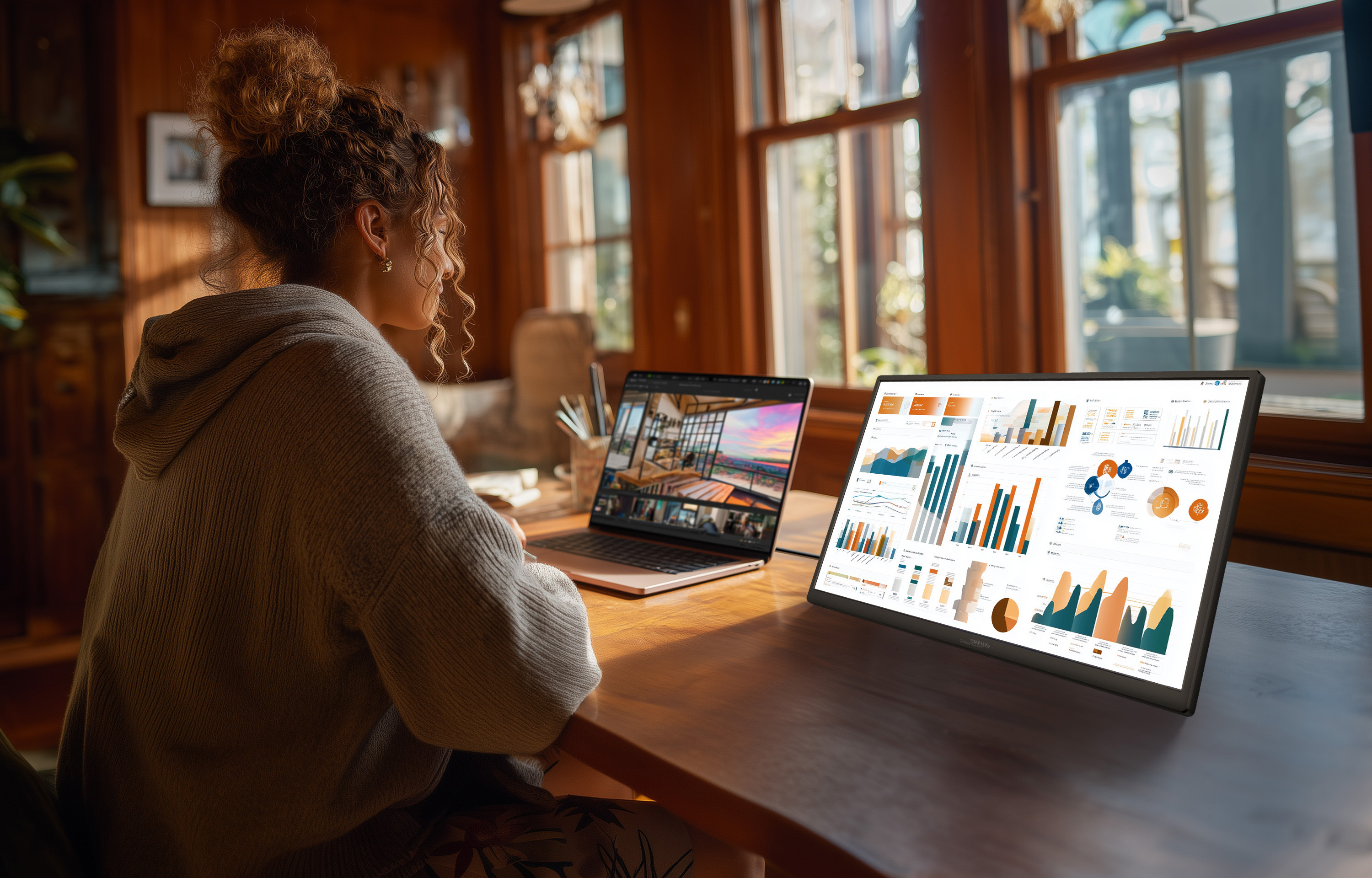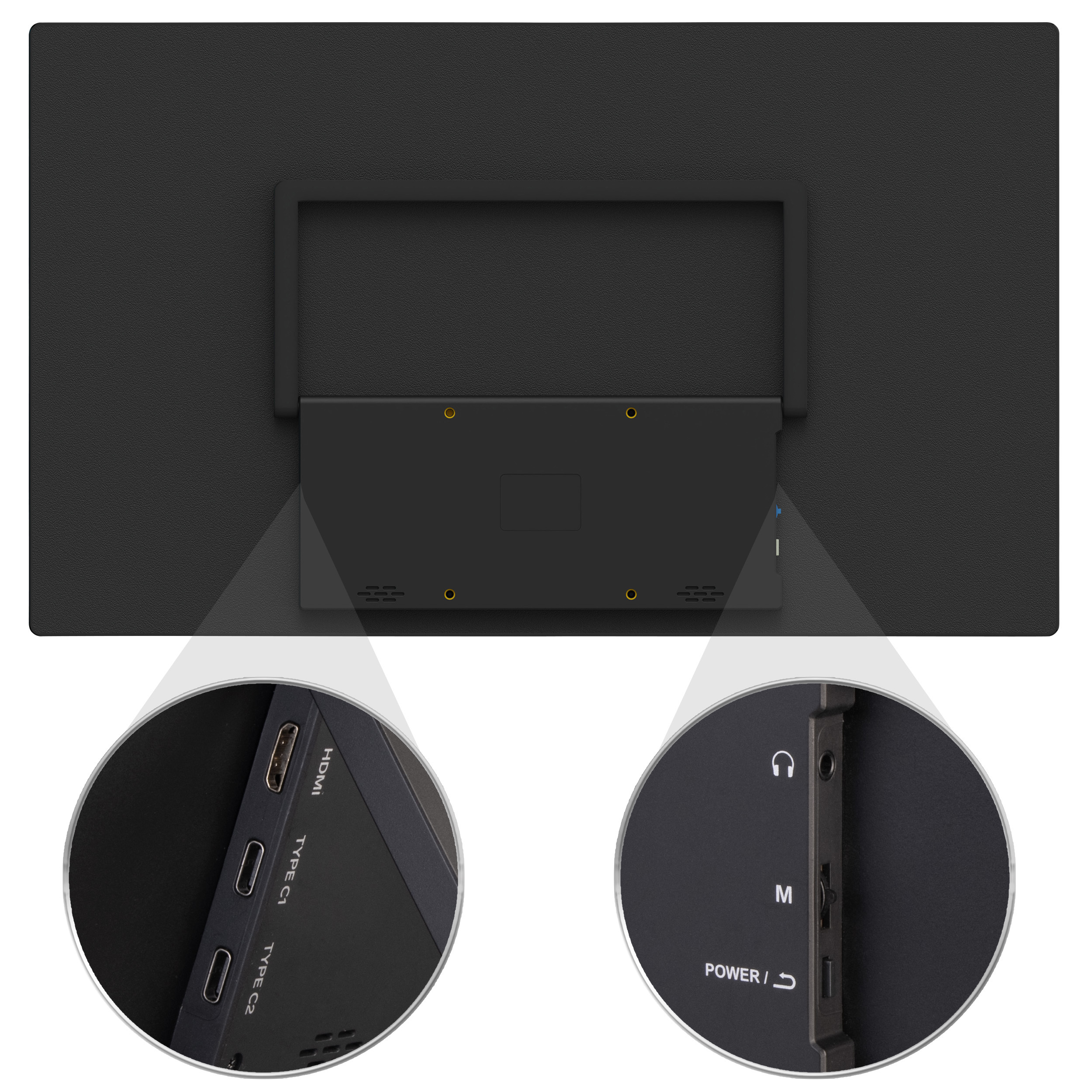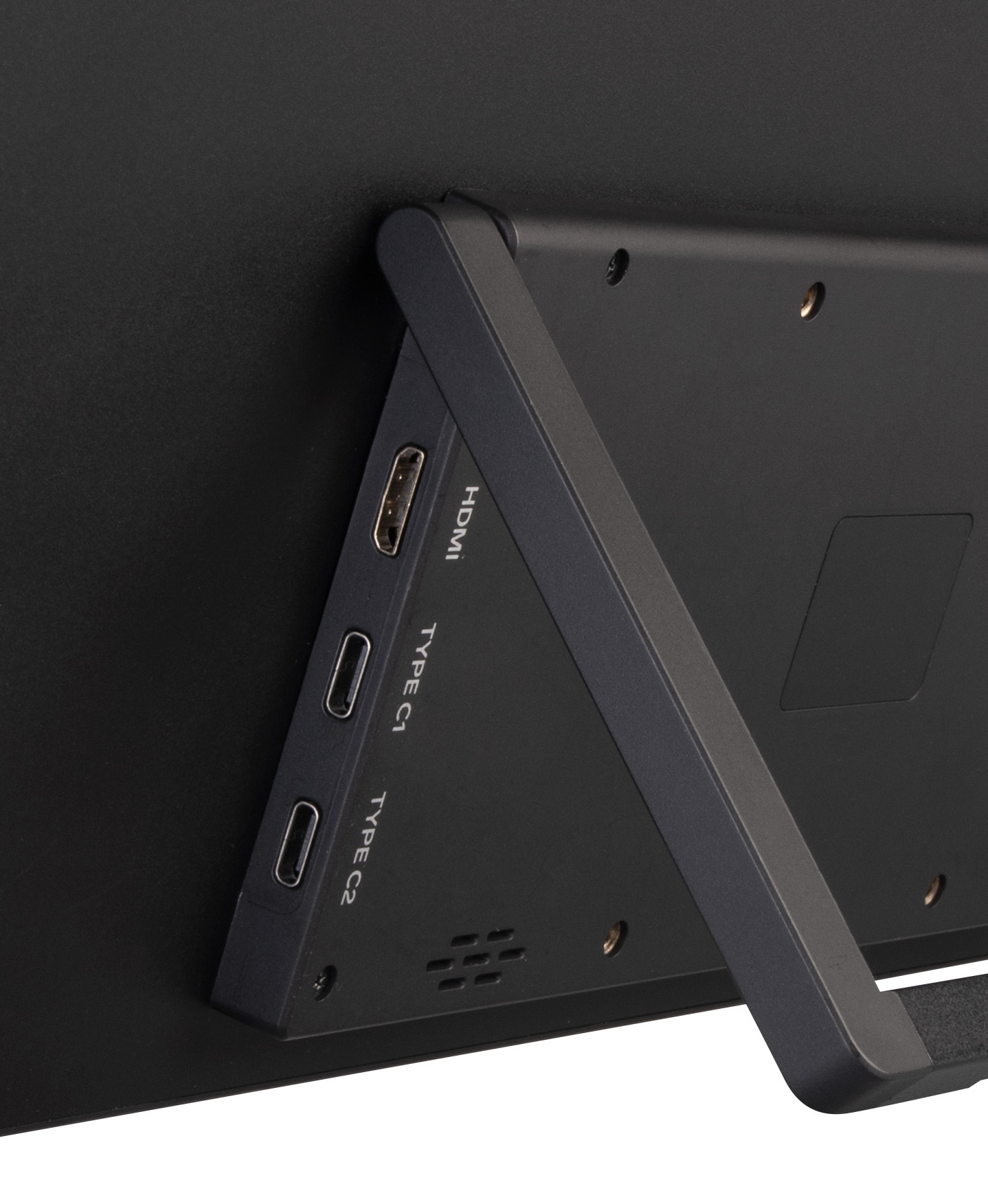 Vielseitige Anschlussmöglichkeiten: Über USB-C und HDMI lassen sich Notebooks, Tablets, Smartphones, Desktop-PCs und Spielkonsolen verbinden. Der Monitor dient als zusätzliche Bildschirmfläche für verschiedene Einsatzorte. Ein integrierter Standfuß ermöglicht die Positionierung in unterschiedlichen Winkeln.