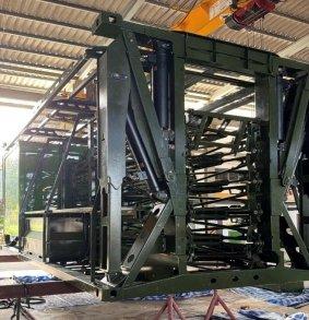 Die in Militärgrün gehaltene Einheit wird an unsere Montageanlage in South Fremantle überstellt, wo Ende Dezember 2025 die Endmontage und Abnahmeprüfung erfolgt.