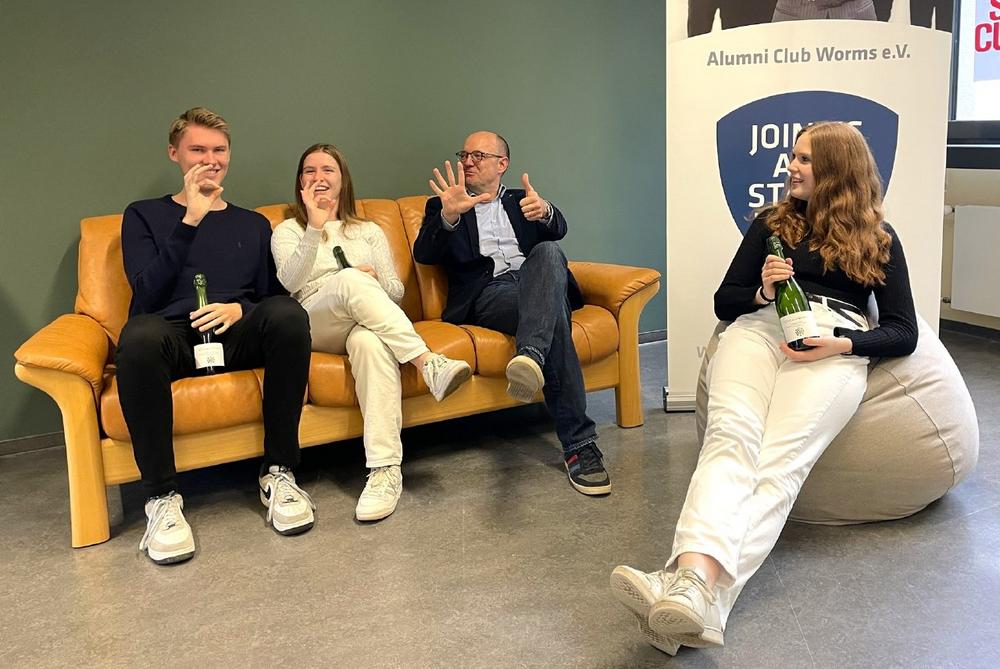 Prof. Tobias Grosche vom ACW-Vorstand empfing die drei im neuen studentischen Raum D043 der Hochschule Worms und überreichte ihnen jeweils eine Flasche regionalen Sekt als kleines Dankeschön. „Es ist großartig zu sehen, wie unser Netzwerk wächst und immer mehr engagierte Mitglieder hinzukommen“, betonte Grosche.