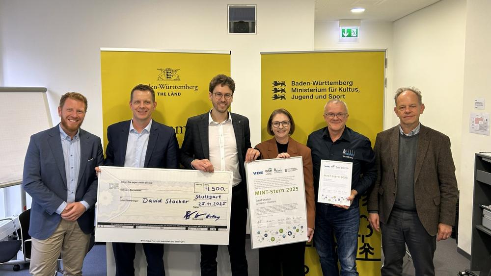 Den Preis überreichte Staatssekretärin Sandra Boser gemeinsam mit Verbandsvertretern und Jury-Mitgliedern. Sie dankte VDE, DVGW und DARC für das zivilgesellschaftliche Engagement im MINT-Bereich und hob die Bedeutung begeisternder Pädagogen für die Zukunft unseres Wirtschaftsstandortes hervor: „Eine gut ausgebildete und motivierte Generation von MINT-Expertinnen und Experten ist entscheidend für die Entwicklung neuer Technologien, die Lösung komplexer Probleme und die Sicherung des Wettbewerbsvorteils unserer Wirtschaft“, sagte Boser. „Besonders freut mich, dass mit dem MINT-Stern Lehrkräfte oder ganze Kollegien an den weiterführenden Schulen ausgezeichnet werden, die mit neuen und kreativen Wegen sowie mit anregenden Formaten den Bedürfnissen der Schülerinnen und Schüler und der sich schnell verändernden Arbeitswelt gerecht zu werden.“