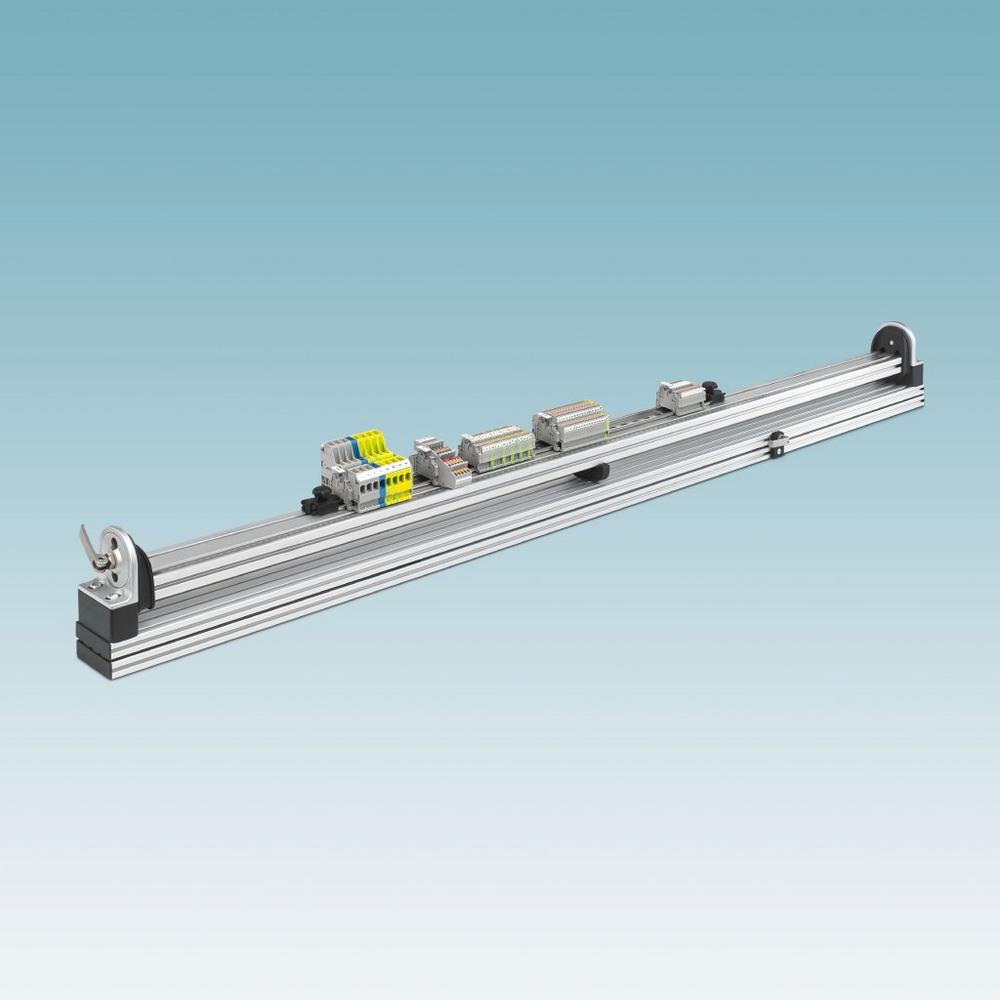 Durch die Rotations- und Schiebefunktion lässt sich die Vorrichtung flexibel drehen und einstellen und bietet eine optimale Sicht auf die Arbeitsfläche. Dies erleichtert auch die komfortable Montage von Klemmenmarkern. Mit der integrierten Messskala lassen sich absolute Maße sowie relative Abstände zwischen Komponenten sicher abmessen. Zusätzliche Nutensteine erlauben die Aufnahme weiterer Klemmblöcke, was die parallele Fertigung mehrerer kleiner Klemmenleisten ermöglicht. Das Set umfasst die Tragschienenaufnahme, zwei beidseitige Klemmblöcke zur Tragschienenklemmung sowie einen relativen Maßstab zur Abstandsmessung. Kompatibel mit der Arbeitsstation BS-WS Assembly von Phoenix Contact verbessert die Vorrichtung die Ergonomie, erhöht die Arbeitssicherheit und spart wertvolle Zeit bei der Montage. Sie sorgt für Stabilität und Effizienz bei der präzisen Fertigung von Klemmenleisten.