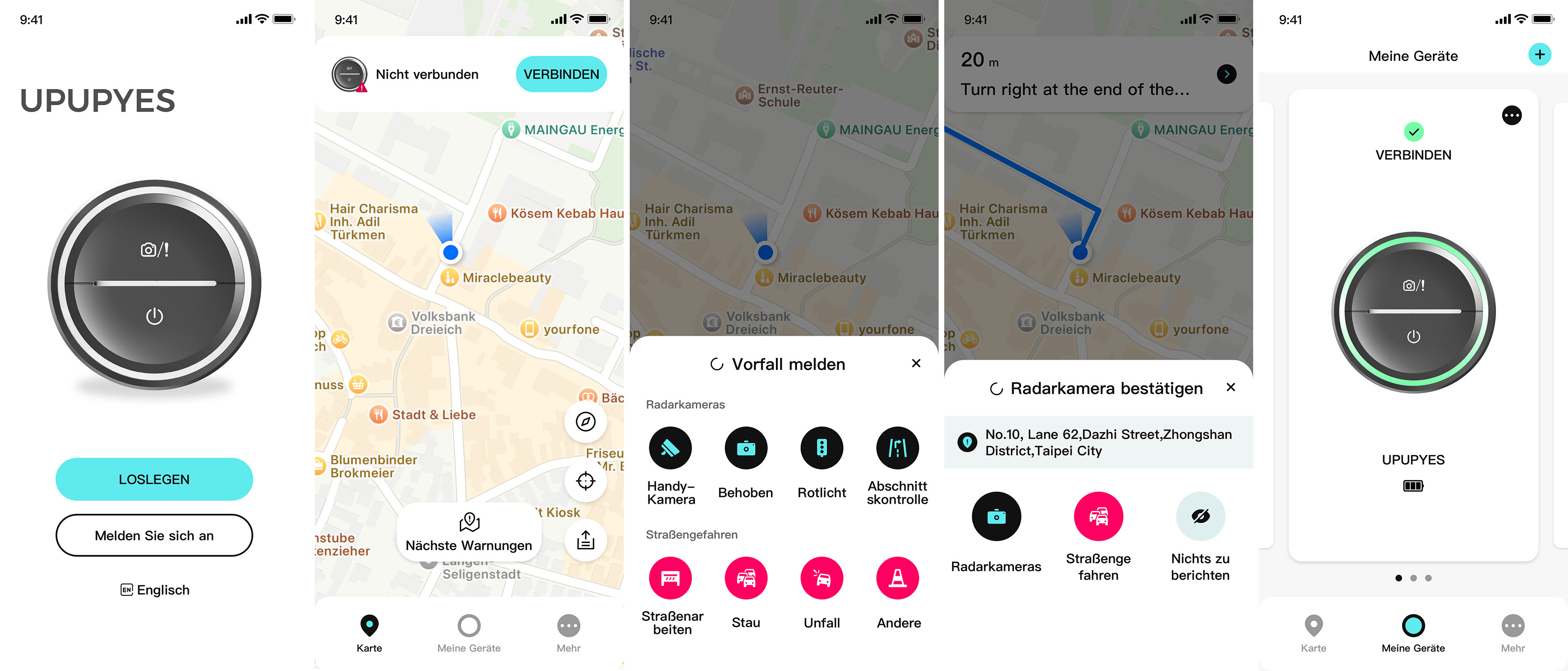 • Einfache Bedienung am Gerät über nur 2 Tasten: ein- und ausschalten, Gefahrernstellen bestätigen und live hinzufügen