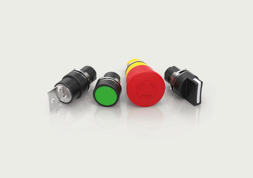 • Modulare Tasten mit 22 mm und 30 mm Einbauöffnungen für einfache Montage und Installation