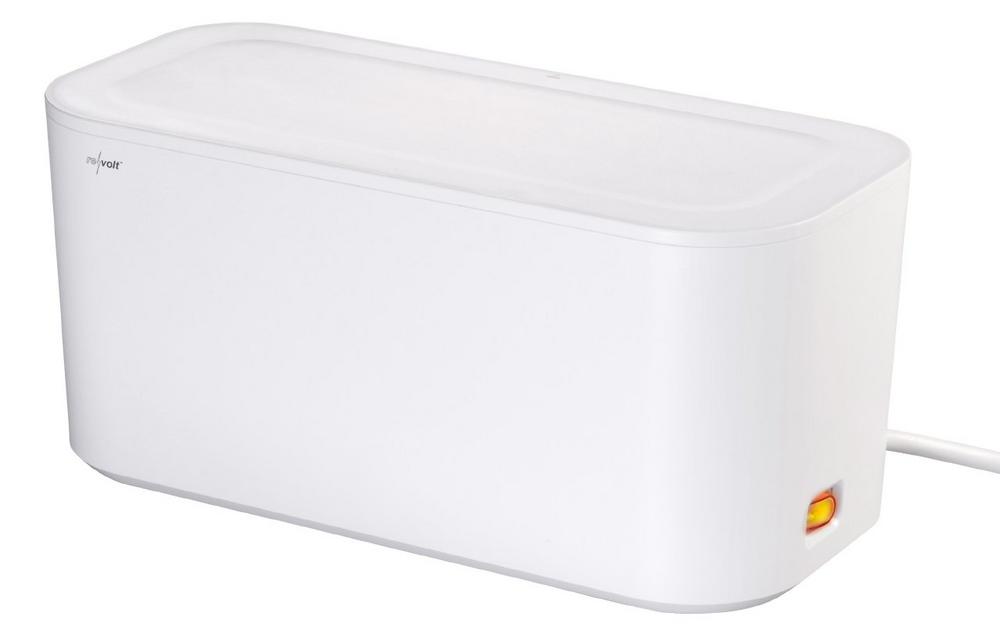 Stromversorgung für bis zu sieben Geräte: Die Mehrfach-Steckdose in einer Kabelbox von revolt versorgt bis zu sieben Geräte wie Computer, Drucker oder Smartphones gleichzeitig mit Strom. Zwei USB-Anschlüsse ermöglichen das direkte Aufladen von USB-Geräten.