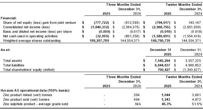 - 100%ige Übernahme der Explorations- und Bergbaufirma Horzum A.Ş., die auch Betreiber des hochgradigen Zinkproduktionsbetriebs Pinargozu in der Türkei ist.