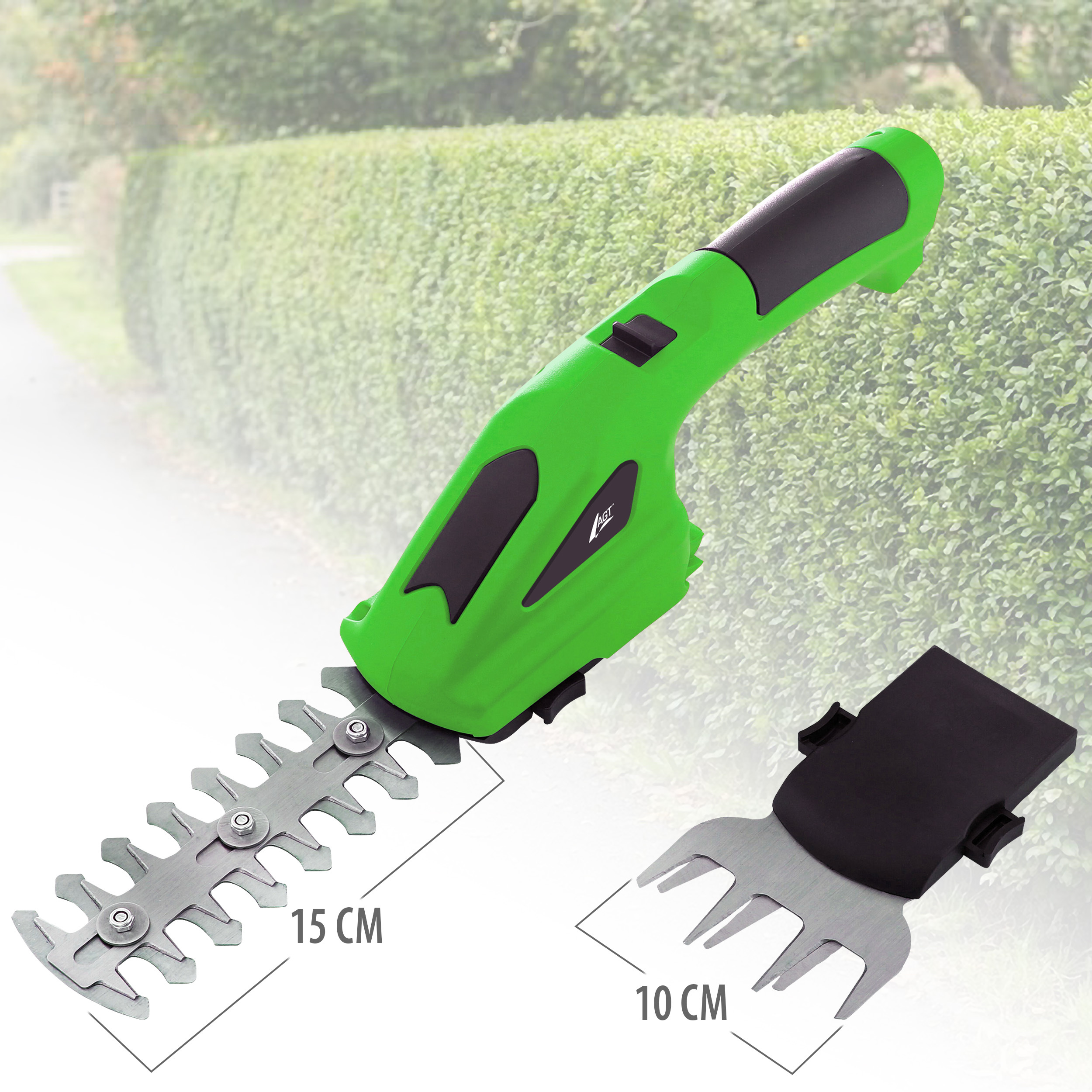 AGT Akku-Gartenschere mit 2 Aufsätzen, 1.500 mAh, 7,2 Volt, grün
