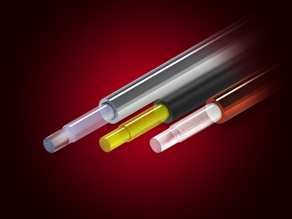 PIR-Fasern bestehen aus einem speziell gefertigten polykristallinen Material mit höchster Transparenz. Ihre geringen Verluste ermöglichen eine hervorragende Übertragung auch im mittleren Infrarotbereich. Die metallbeschichteten Fasern hingegen kommen überall dort zum Einsatz, wo Hitze, Kälte, Feuchtigkeit, Vakuum oder chemische Belastungen konventionelle Fasern an ihre Grenzen bringen.