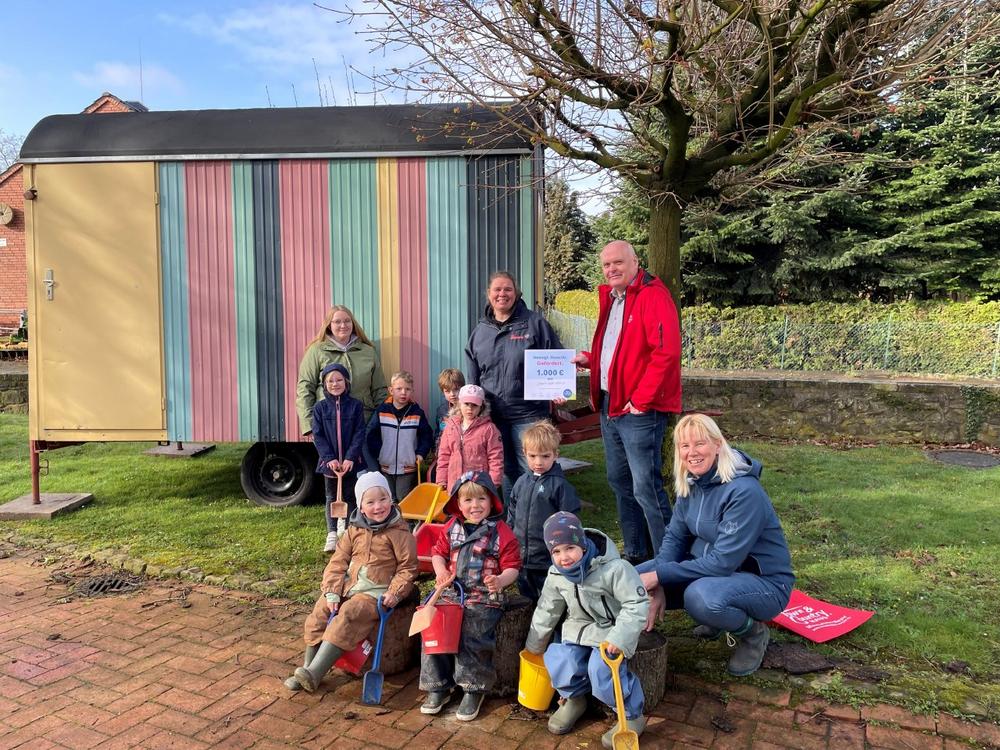 Stellvertretend für die Stiftung übergab Stiftungsbotschafter Michael Hartmann, Hausbauberater bei der Massivhaus Meyer GmbH & Co. KG, die Urkunde und lobte das Engagement der Kita: „Kinder brauchen Räume, in denen sie die Welt selbst entdecken dürfen – am besten draußen, mit Erde an den Händen und Neugier im Blick. Mit dem Bauwagen entsteht hier ein geschützter Ort für Lernen, Gemeinschaft und Naturerfahrung. Dieses Engagement zeigt, wie wertvoll frühkindliche Bildung im Einklang mit der Natur ist. Wir freuen uns sehr, die Renovierung mit unserem Town & Country Stiftungspreis unterstützen zu können.“