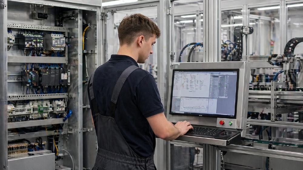 Bestes Beispiel: Elektroniker für Automatisierungstechnik. Viele hören nur „Elektroniker“ und sind gedanklich sofort bei Steckdosen, Kabeln und Hausinstallation. Fertig. Der Beruf ist eingeordnet. Nur eben falsch. Denn in der Automatisierungstechnik geht es oft um etwas ganz anderes. Um Anlagen. Um Steuerungen. Um Prozesse. Um Fehlersuche. Um Überwachung. Und je nach Bereich eben auch um sehr viel Computerarbeit. Das hat mit dem Bild, das viele zuerst im Kopf haben, nicht besonders viel zu tun.