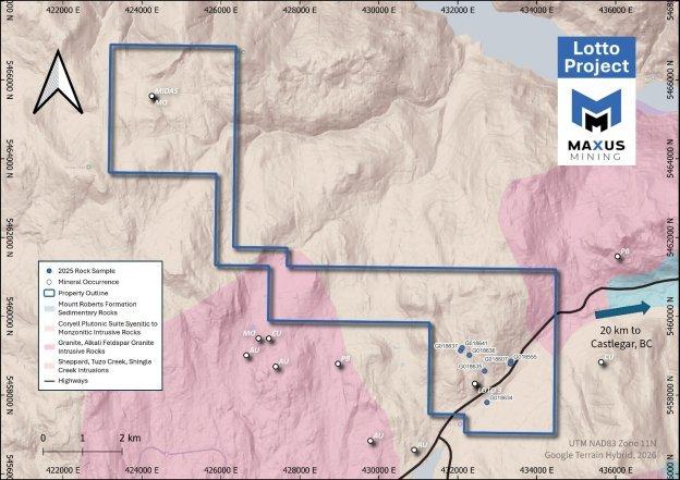 Maxus Mining treibt Exploration auf dem Wolframkonzessionsgebiet Lotto in British Columbia (Kanada) mit den Ergebnissen von 2025 voran und meldet laufende Entwicklung von Zielen
