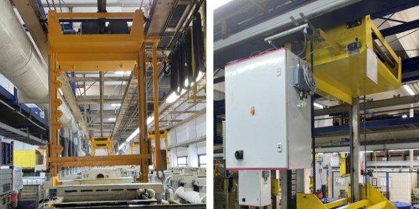 Zur Digitalisierung zählt auch die Reduktion von Kabeln. Durch den Einsatz von I-WLAN sind Anlagen für die Zukunft gerüstet. Statt lästigen und wartungsanfälligen Schleppkabeln versorgt eine Stromversorgung die Transportwagen mit Strom. Die Datenübertragung zur SPS erfolgt über ausfallsicheres Industrie-WLAN. Vorteile sind die höhere Flexibilität bei den Fahrbereichen, weniger Abrieb/Verschmutzung, seltenere Wartungen und geringere Lärmbelästigung.